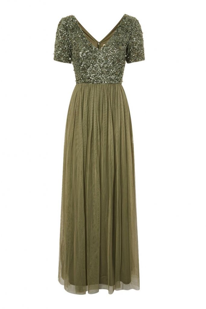 Lace & Beads Chandelier Embellished Maxi Dress in Dark Olive. Elevate?your occasionwear with our Chandelier Dark Olive occasion dress.?The V neckline offers a sexy silhouette.