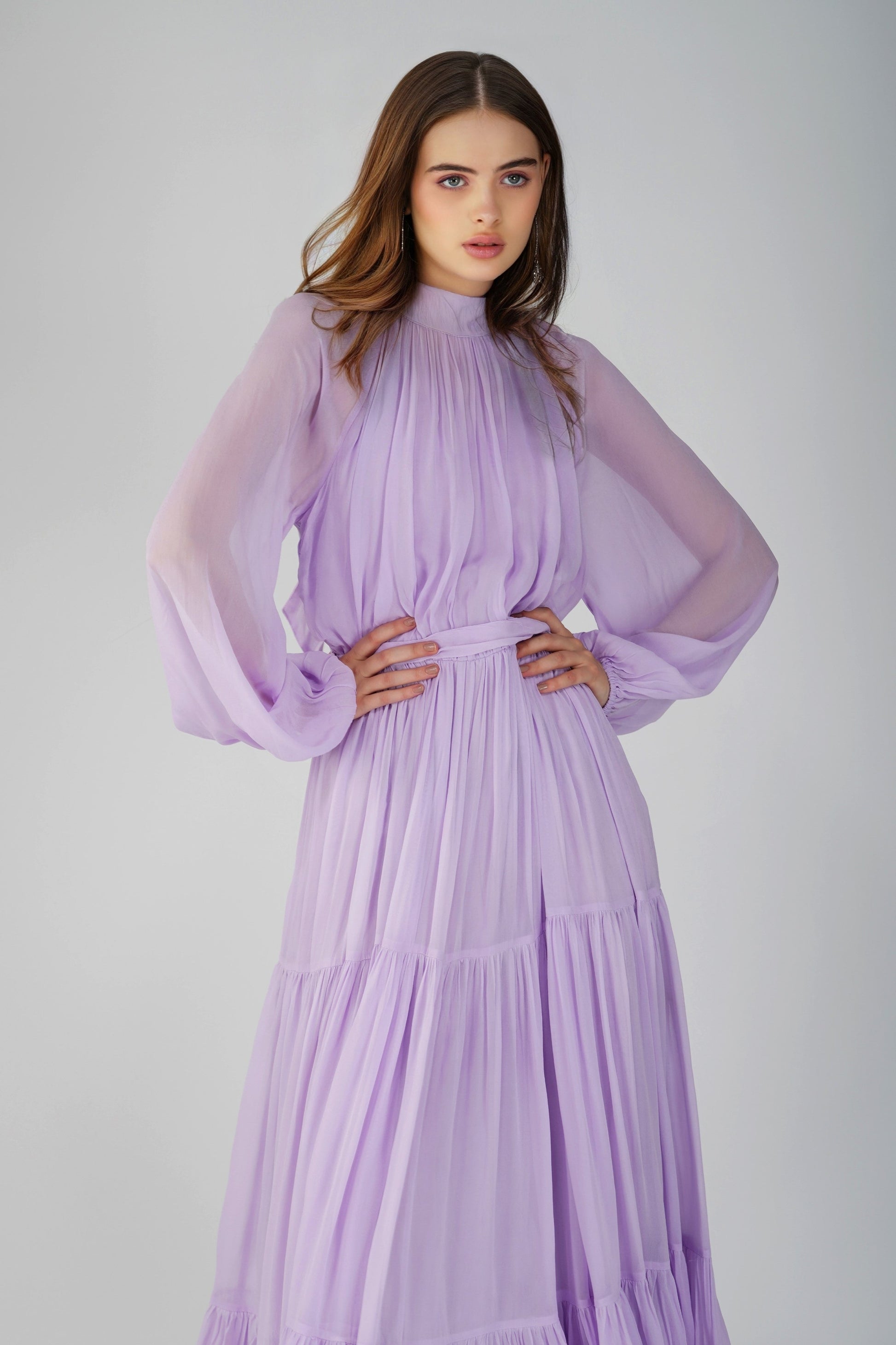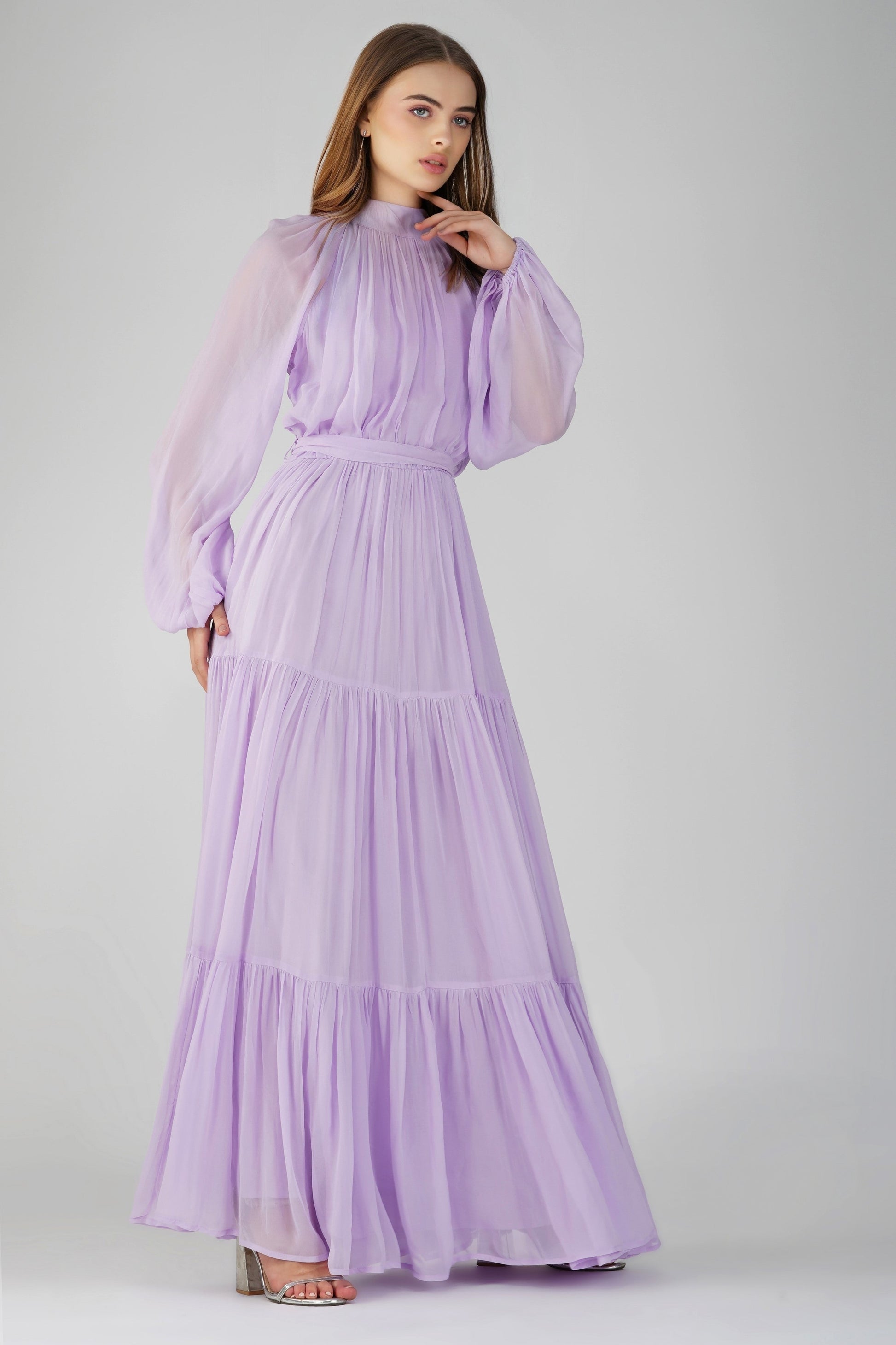 Lace & Beads Rosetta Maxi Dress in Lilac. The only gown you need to be an ethereal vision in lilac. The long sleeves and high neck provide a sophisicated elegance, paired with an alluring open back and a flattering a-line skirt.?