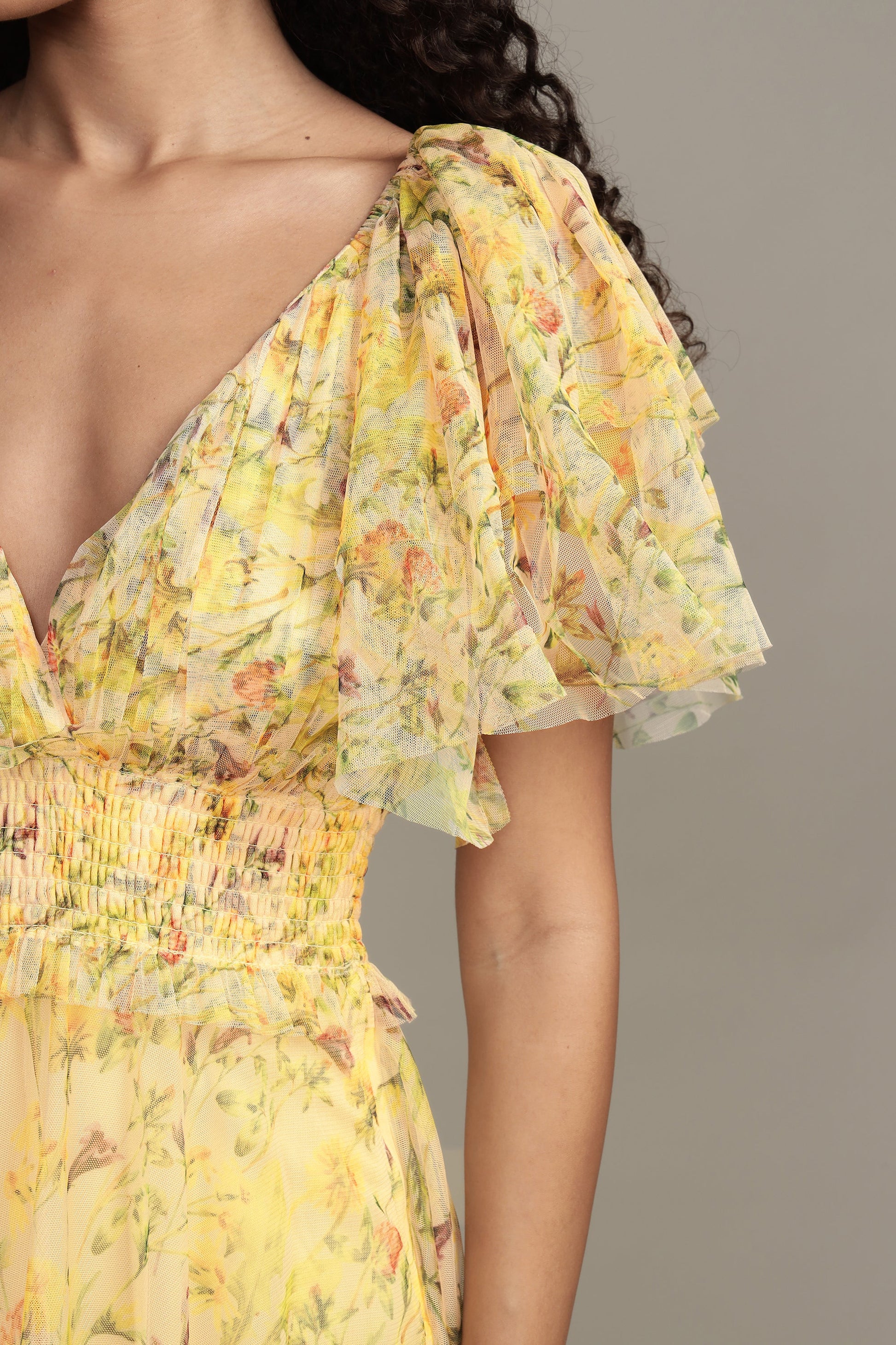 Lace & Beads Shelby yellow floral maxi dress. This stunning sundress is?your go-to choice for an effortlessly look at any event. Whether you're searching for the perfect?garden party dress or a stunning wedding guest dress, this printed yellow dress has got you covered.
