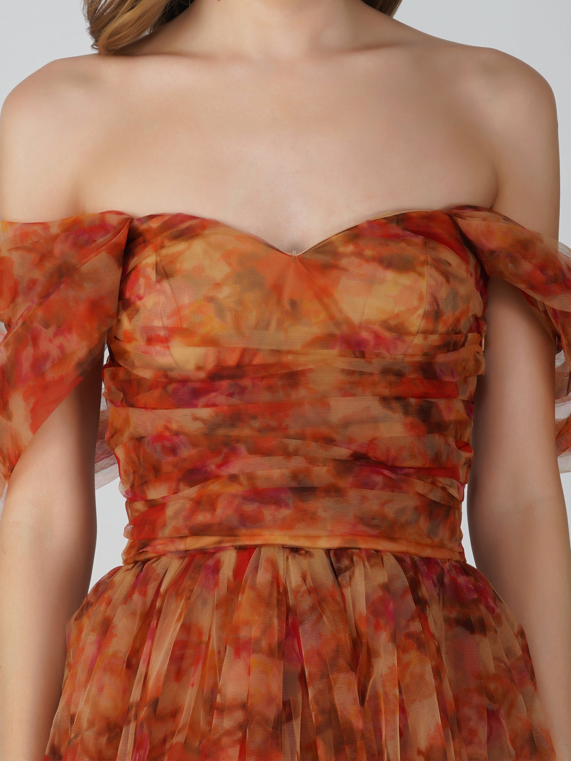 Created with a beautiful rose print throughout the dress. This warm tulle dress is the stand-out dress you have got to have! From the stunning print to the voluminous tulle skirt - this is the ultimate occasion dress. Make your dramatic entrance with this maxi dress whether you are looking for a wedding guest dress or a dress for a special event.